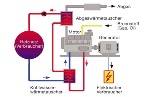 - Gleichzeitige Erzeugung von Strom und Wärme